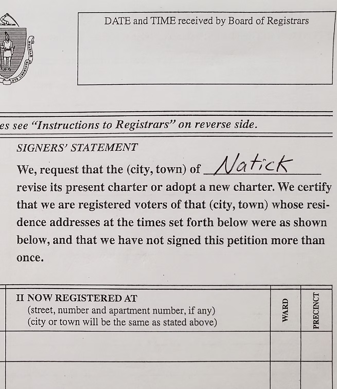When you add your signature to the petition, you are joining a group of (hopefully!) more than 4,000 other Natick voters asking the Natick Select Board to add a question of on the March 2024 ballot that will ask Natick voters whether or not if they want to create a Charter Commission.